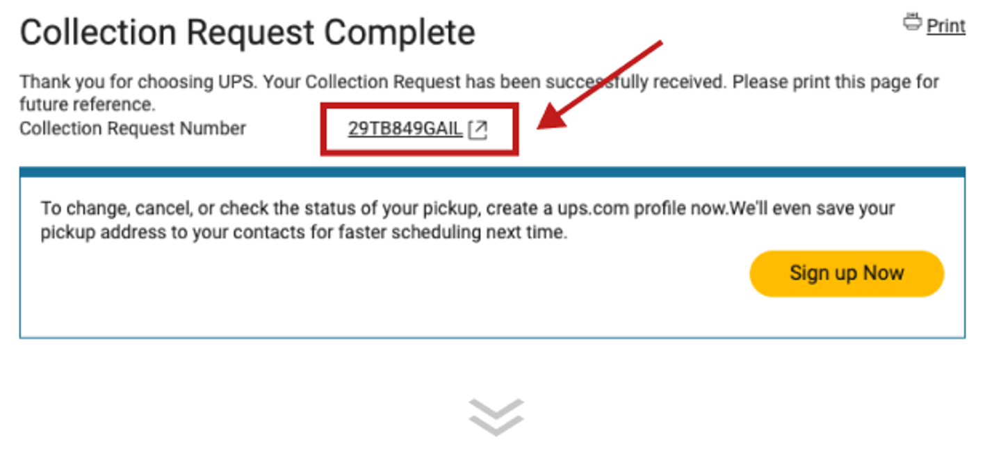 第八步:如果之後想修改UPS上門收件時間或者其他資料,可以在頁面右側 [Collection Status] 輸入 上述的 Collection Request Number 進行修改。