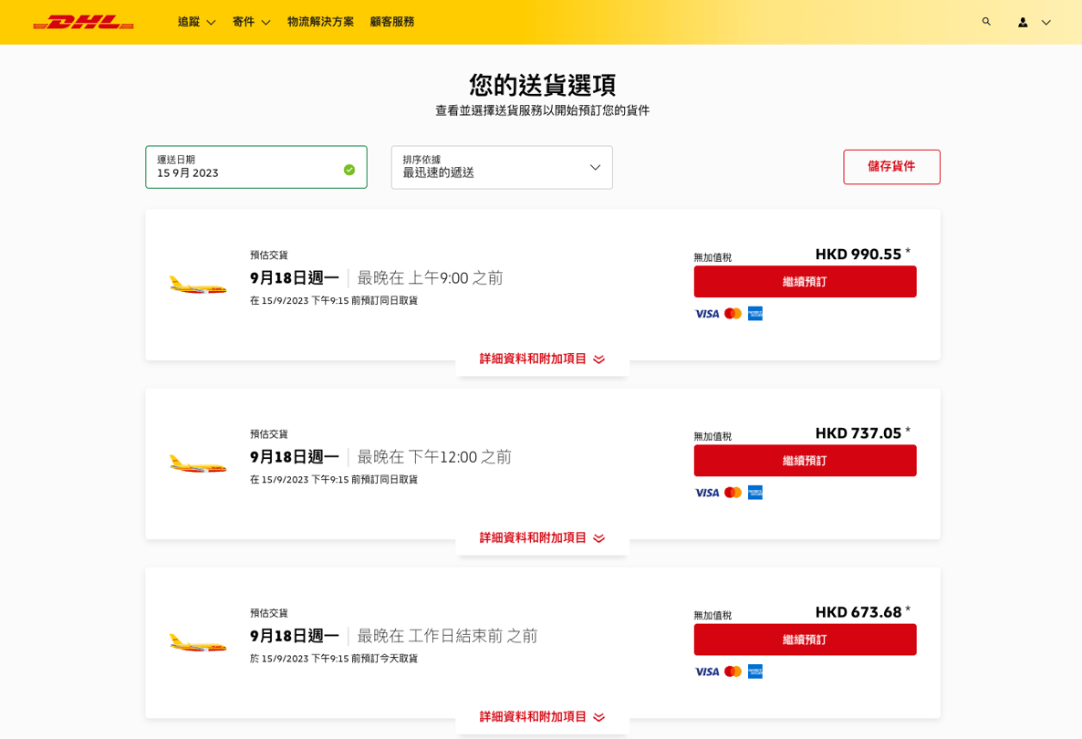 如果你透過Fuuffy平台使用DHL的服務,在付款後便可預約DHL上門收件,最快即日可上門收件。