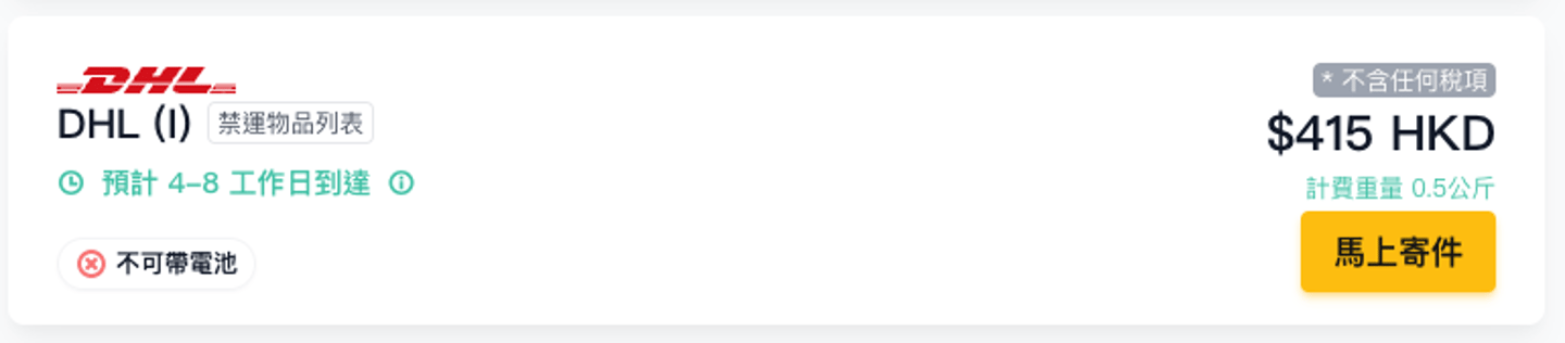 計劃將食物、乾貨海味或零食寄往澳洲?你可以使用DHL和FedEx寄送食物到澳洲。不過在進行寄件前,建議你先聯繫Fuuffy客服進行詳細咨詢,以確保你的食品能夠符合國際寄送規範,並安全抵達海外目的地。透過Fuuffy平台選擇DHL寄送到澳洲,你將享受到最優惠的運費,僅需HK $415。