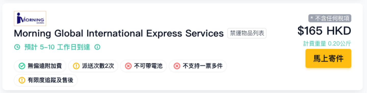 選擇Morning Global快遞從香港寄送包裹到澳洲,雖然其運費相對其他快遞公司略高,達到HK $165,但它仍然是一個值得考慮的選擇。不過需要注意的是,與某些其他快遞公司相比,Morning Global提供的包裹追蹤和售後服務可能有一定的限制。在選擇此快遞服務時,建議你根據個人需求和預算,綜合考慮運費和服務範圍,以確保你的選擇最符合你的寄件需求。
