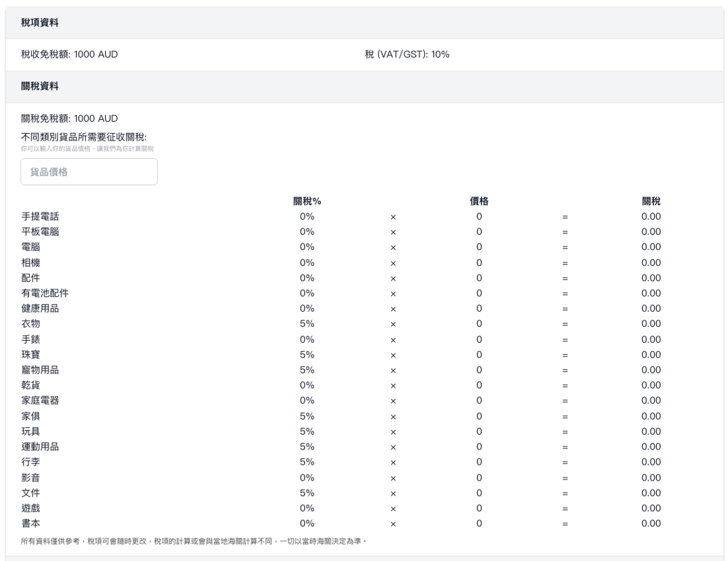 4. 澳洲關稅: 包裹價值超過一定限度可能需要繳納關稅和增值稅。