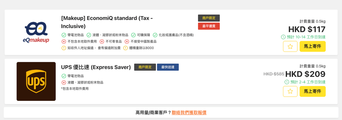 - 這是國際退貨最關鍵的一步。您需要選擇一家可靠的國際快遞公司,將商品從香港寄回海外賣家。你可以透過 Fuuffy 貨飛 比較各家物流報價,找到最經濟實惠且安全的方案。