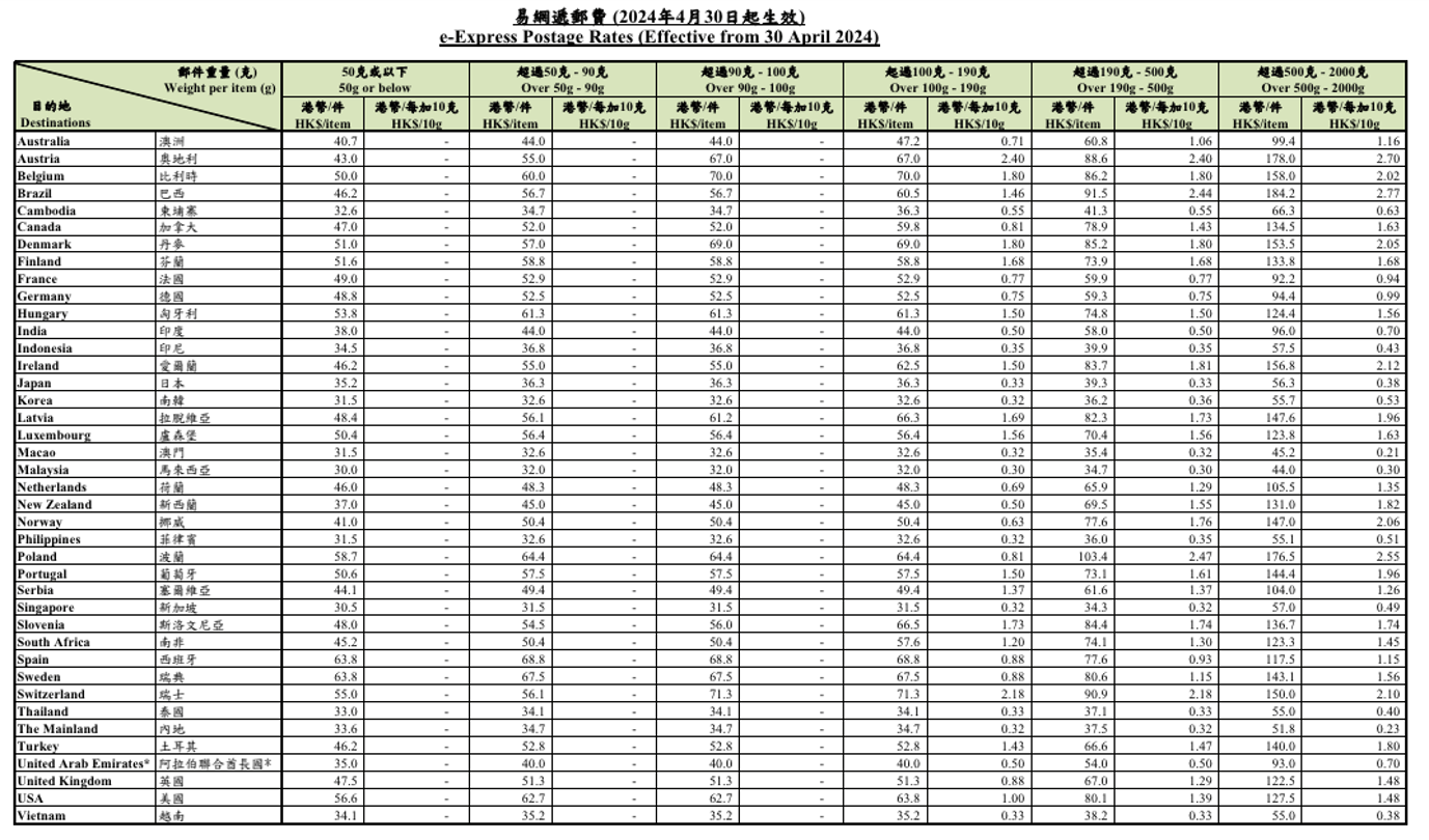 易網遞是香港郵政提供的一項寄送郵件和包裹至世界各地的空郵服務。它具有以下特點: