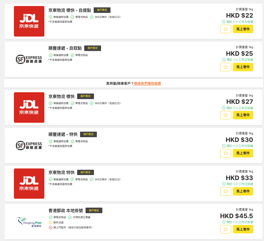 如需了解詳細資訊,請參閱文章:【2026最新】香港本地寄件慳錢攻略:順豐速遞、香港郵政、京東快遞運費比較