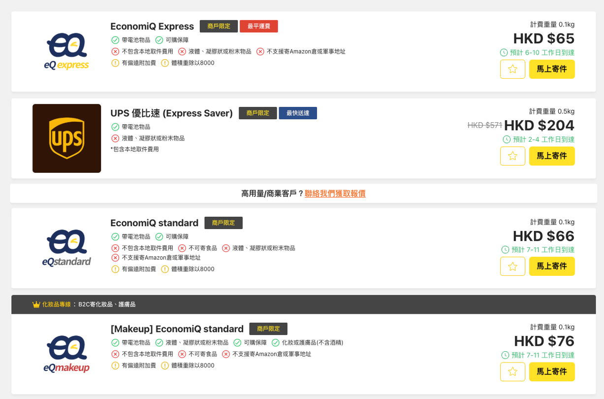 免費比較各大國際快遞運費和時效,提供UPS、DHL、Fedex等超過16間快遞低至3折的獨家優惠。