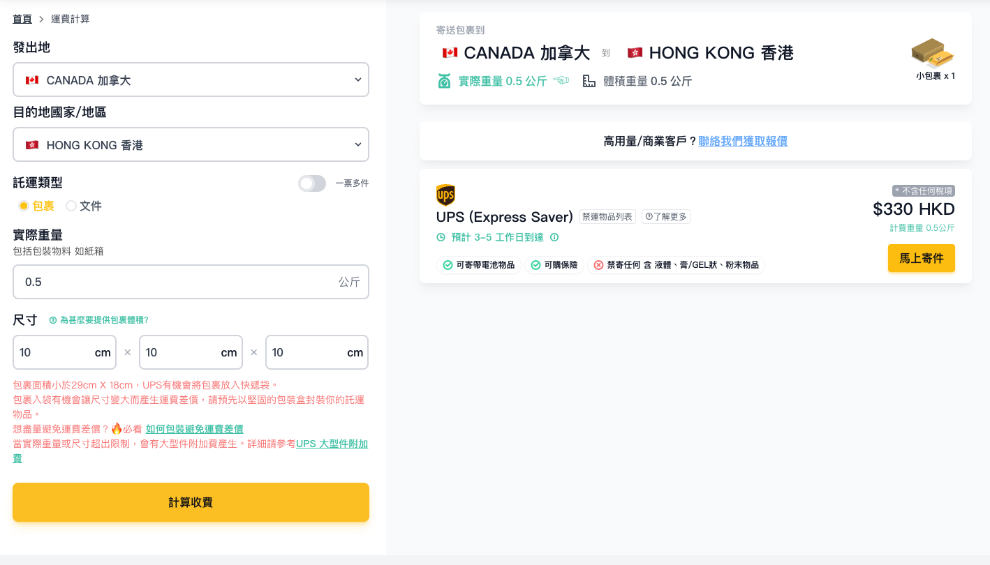 免費比較各大國際快遞運費和時效,提供UPS、DHL、Fedex等超過16間快遞低至3折的獨家優惠。
