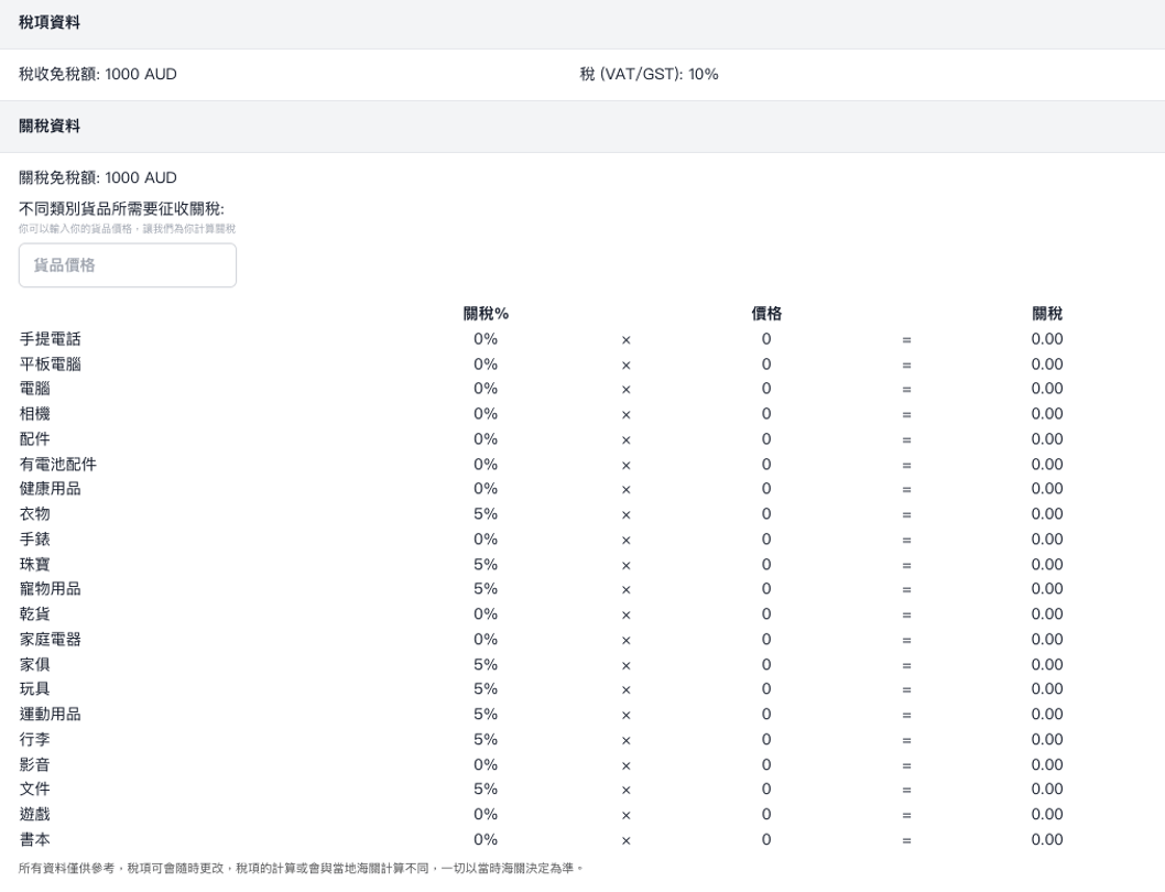 請注意,澳洲海關會根據發票金額來評估關稅,如無發票會自行估價。建議您查看澳洲海關官網,了解最新的關稅政策和限制,並如實申報包裹內容,避免被罰款。