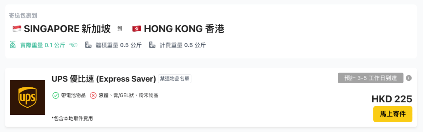 新加坡寄香港最快最平國際快遞選擇對比評測。全面覆蓋新加坡至香港熱門快遞公司運費、時效及服務,比較空運、陸運等不同運輸方式優劣,並列出新加坡寄香港的一切禁運及限制事項,為你一站式解決新加坡寄港的所有疑難!