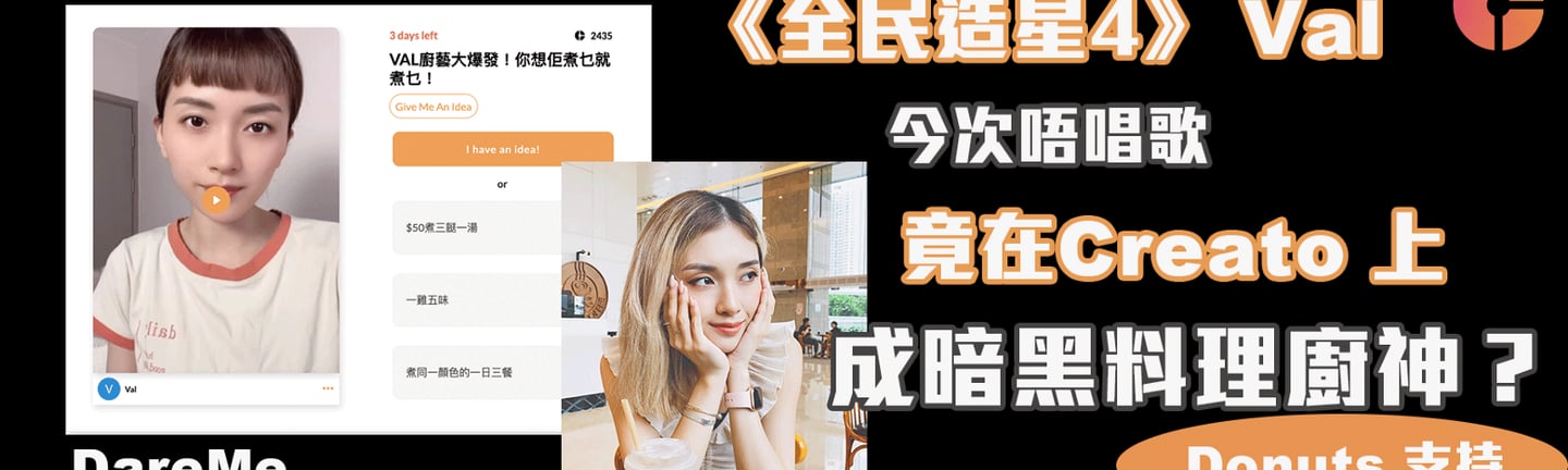 Creato利用左一個叫DareMe的玩法:首先要令觀眾明白創作者的創作想法,並且邀請觀眾參與其中,如果觀眾想支持創作者就可以用甜甜圈代幣,與創作共同創作作品過程。最後完成創作後,甜甜圈代幣就可以轉換成創作資金。