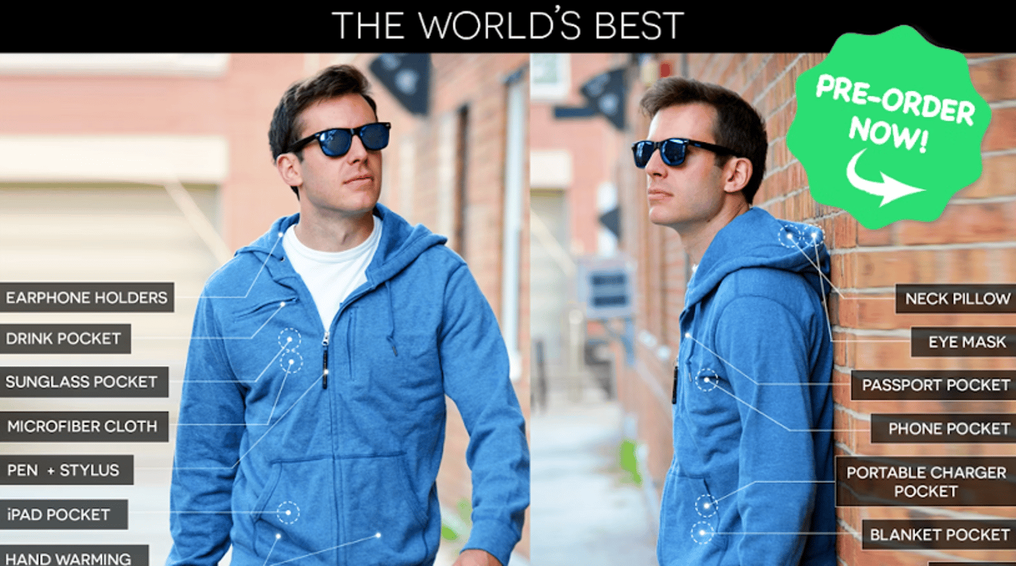 這款眾籌產品具備15項實用功能,成為Kickstarter的熱門眾籌項目。外套包括了頸枕、移動電源口袋、飲料口袋及防水功能等多種用途及功能,當該眾籌項目剛開始發起便受到外界的高度關注。從眾籌項目完成到交付眾籌產品,只用了短短兩個月,在Kickstarter成功眾籌例子中較為罕見。