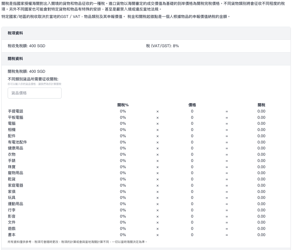 文章資料來源自新加坡海關網站,最新資訊以新加坡海關網站作準。