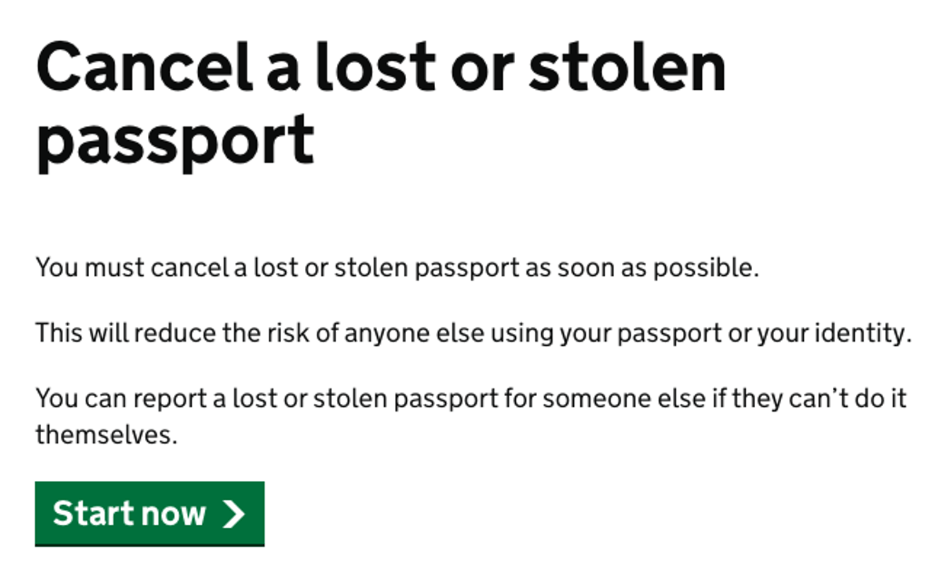 (若護照遺失或受損,需完成「Cancel a lost or stolen passport」表格)