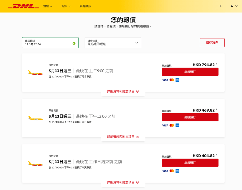 *最新價格以DHL官方網站當日價格作準