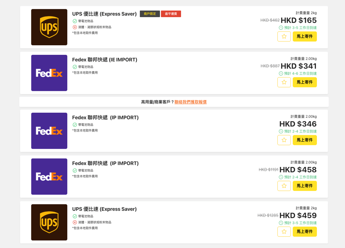 如有需要,用戶可於 Fuuffy 快遞比價平台 即時計算運費 及運送時效,選擇最合適的服務。